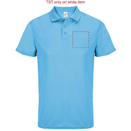 SOL'S PITCHER UNISEX POLO, polo sport, 100% polyester recyclé, manches courtes, coupé cousu, patte renforcée 3 boutons ton sur ton, bande de propreté à l'encolure, col en côte, adapté à la sublimation. Pour la correspondance des tailles, veuillez vous référer au size chart dans la documentation produit.