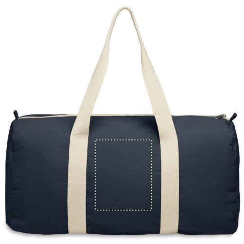 Sac de sport ou de voyage avec compartiment latéral zippé et poche intérieure zippée en coton recyclé (80%) et polyester recyclé (20%) de 320 gr/m² avec longues poignées.