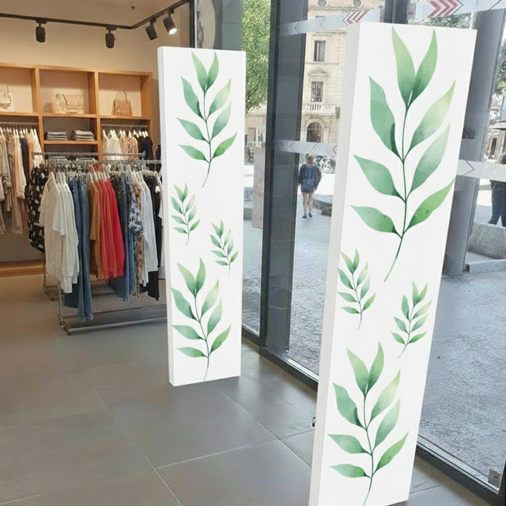 Sublimez vos portiques antivol avec notre habillage en carton microcannelé 1,5 mm de 48x155 cm. Facile à installer, léger et solide, ce support permet de personnaliser vos entrées de magasin et de mettre en avant vos promotions, offres spéciales ou messages institutionnels. Parfait pour les commerces souhaitant allier communication visuelle et présentation soignée.