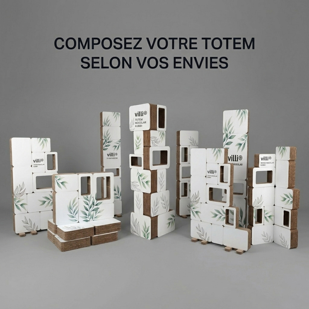 Réinventez votre communication visuelle avec Modülar, la solution d'agencement modulaire en carton qui s'adapte à tous vos besoins. Fini les supports jetables : investissez dans un système durable, réutilisable et personnalisable à l'infini.